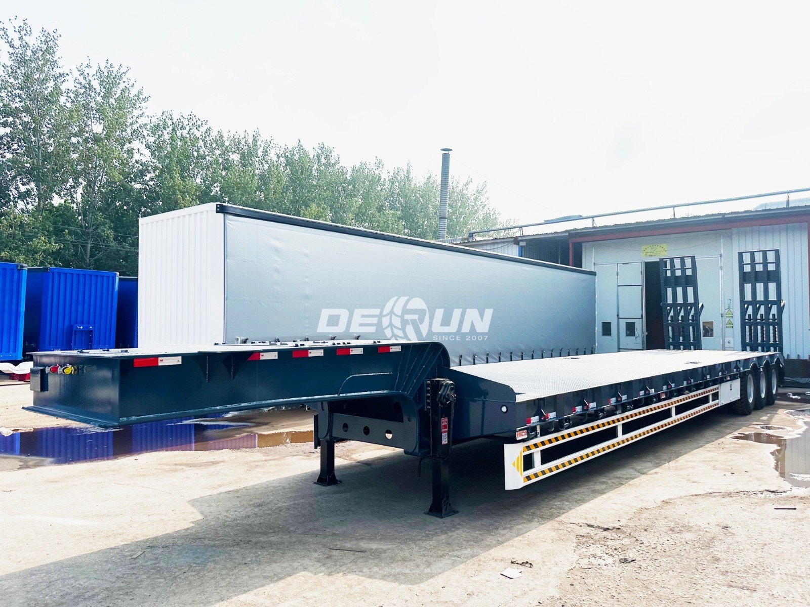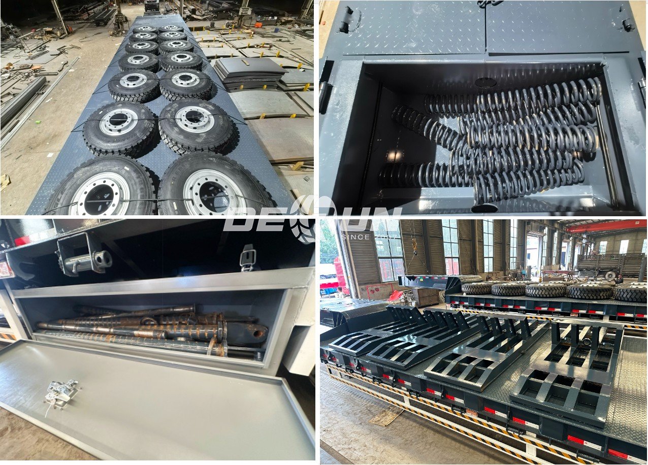 Two high-performance three axle lowbed trailers were recently shipped from the Derun Vehicle Factory and will soon be sent to Angola by sea. They will be used for local large-scale equipment transportation, construction material distribution, port logistics, etc., providing strong transportation guarantees for infrastructure projects and commercial transportation in Angola and surrounding areas.
