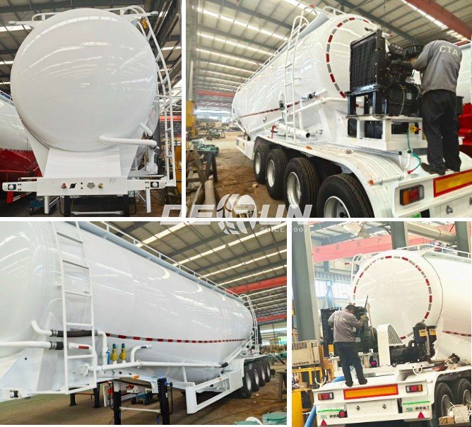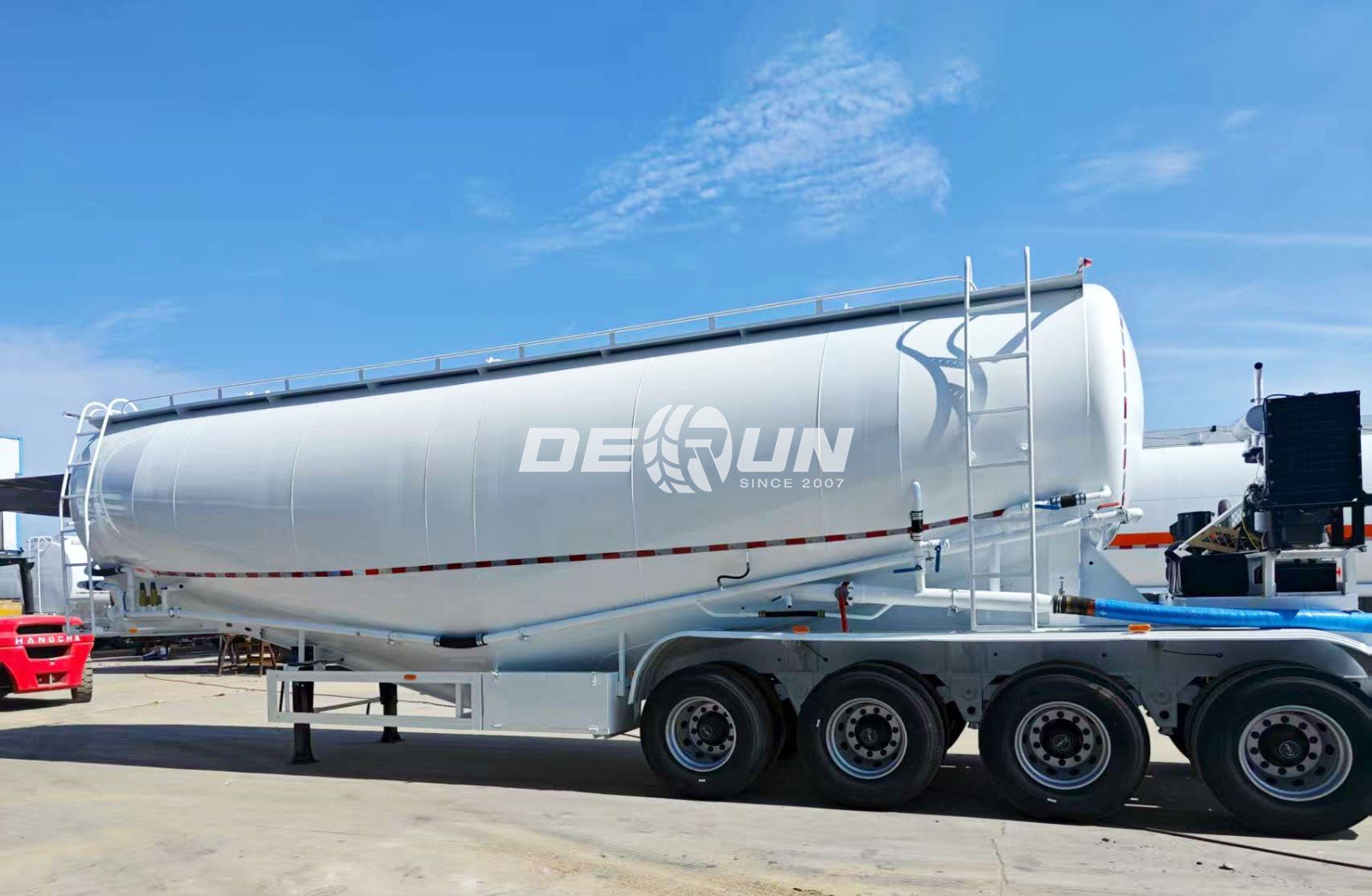 DERUN VEHICLE has more than ten years of experience in the export of semi-trailers. Our products include powder tankers, oil tankers, low-bed trucks and container trucks, which are exported to more than 30 countries in Africa, the Middle East and America. With personalized design, strict quality control and one-stop export service, we will continue to work hard in the future to provide customers with cost-effective and low-maintenance powder tank transportation solutions.