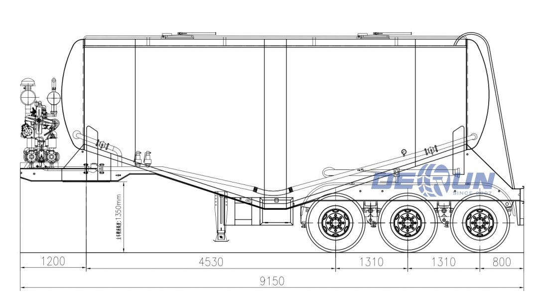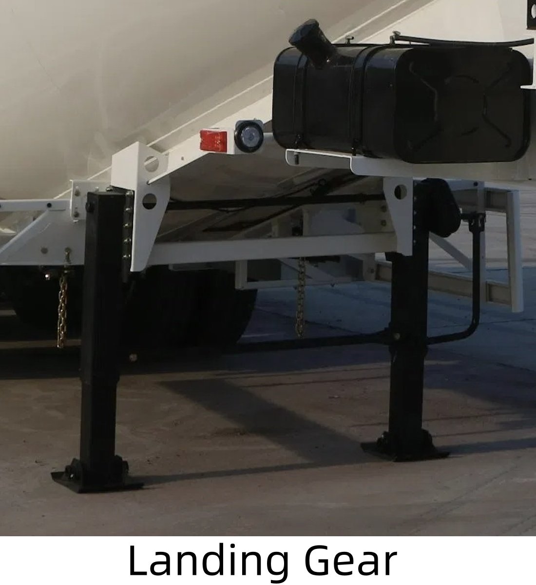 Landing Gear: The landing gear provide additional support points, better distributing the weight of the bulk cement semi trailer, protect the powder tanker semi trialer's components and extend service life.