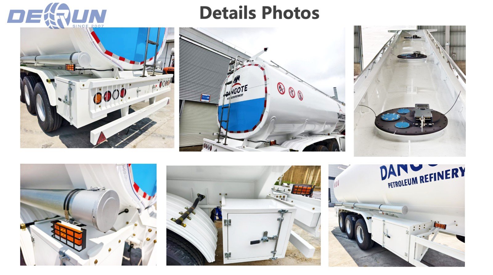 The oil tank semi trailer delivered this time adopts high-strength stainless steel tank body and triple anti leakage safety system. In the current market environment, safety is the top priority in the transportation industry. DERUN VEHICLE's three axle oil tank semi trailer ensures maximum risk reduction during transportation. In addition, the factory technology center has customized the design of oil tank semi trailers based on local road and environmental conditions in Nigeria: