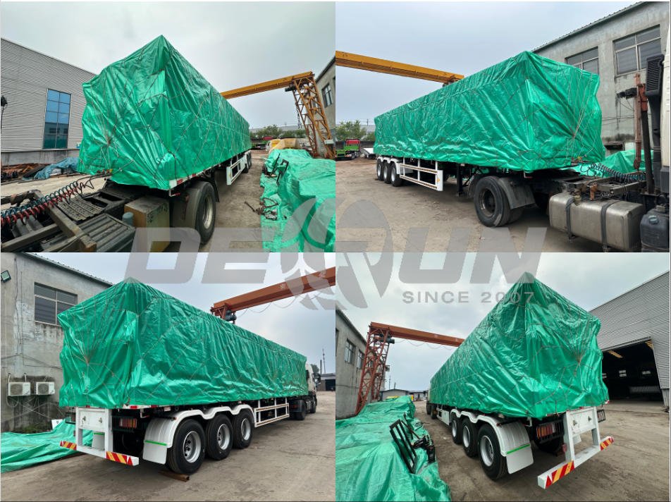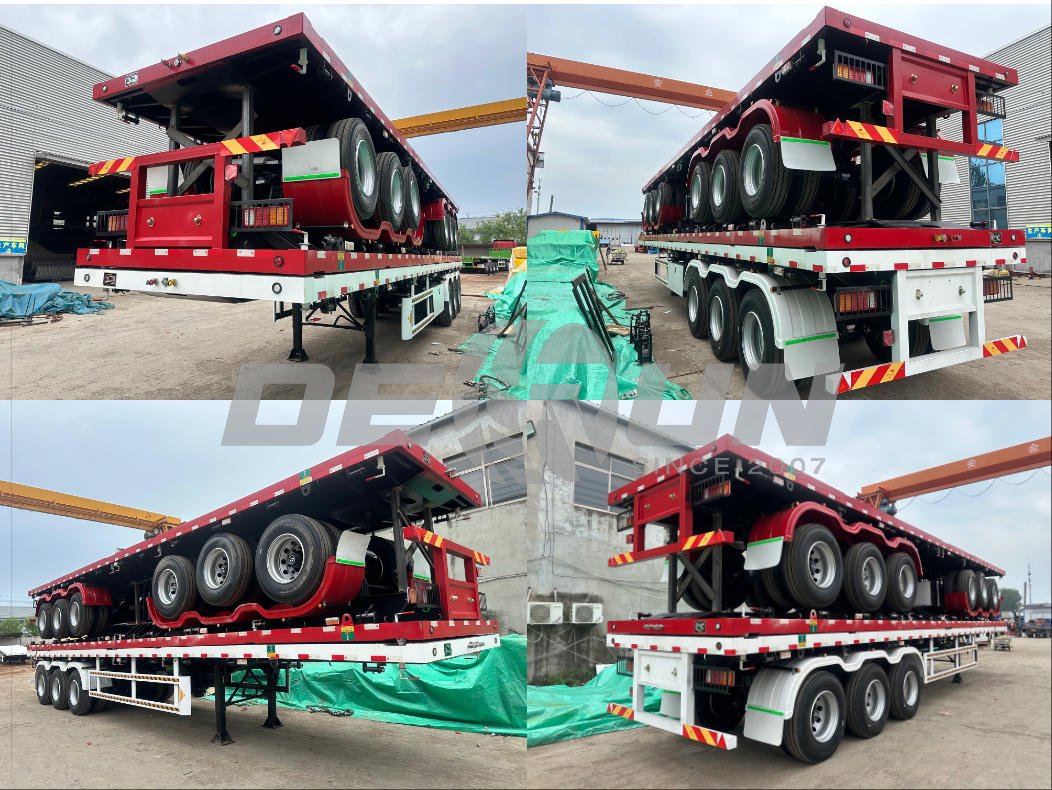 Three-axle flatbed semi-trailers are shipped stacked on three semi-trailers, significantly saving shipping space and reducing ocean freight costs. Based on the load capacity and weight distribution of the three-axle semi-trailers, appropriate lashing tools, such as wire ropes and tie-downs, must be used during loading to secure the three flatbed semi-trailers and prevent them from shifting or falling during transport. Prior to shipment, our shipping team thoroughly inspects all three flatbed semi-trailers to ensure they are free of potential faults and waxes them to prevent rust during shipping. A tarpaulin is also provided to protect the flatbeds from rain.
